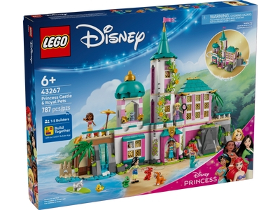 Er wacht kinderen en Disney fans een magische wereld in deze LEGO® ǀ Disney Prinsessenkasteel en koninklijke huisdieren (43267) speelset. Deze cadeautip voor meisjes en jongens vanaf 6 jaar bevat een kasteel met kamers voor elke prinses en kan worden gesloten om neer te zetten. Er zijn diverse accessoires en functies, waaronder pijl en boog om mee te oefenen, een watervaltunnel, uitneembaar meubilair en meer. Inclusief 5 LEGO ǀ Disney minipoppetjes: Ariël, Rapunzel, Mulan, Jasmine en Vaiana, plus 5 LEGO ǀ Disney dierenfiguren: Botje, Pascal, Rajah, Pua en het allereerste Mushu personage.